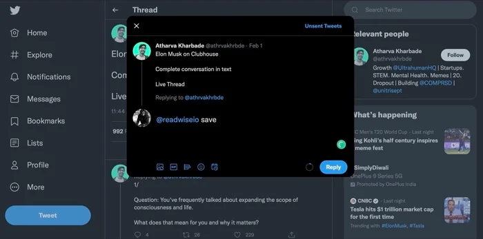 - How can I save a Twitter thread for offline reading?